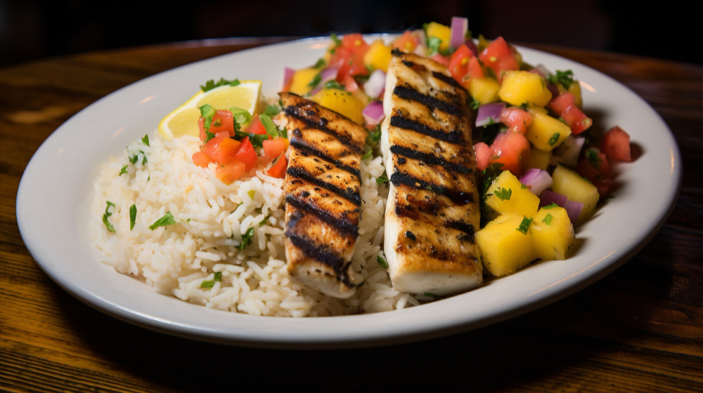 $15.99Grilled chicken pineapple rice beans and fresh vegetables